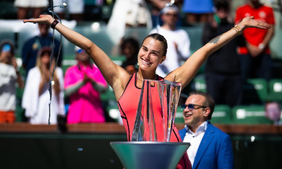 北京时间3月16日,2026年WTA1000印第安维尔斯站女单决赛,头号种子萨巴伦卡挽救赛点,鏖战三盘以3-6、6-3和7-6(6)逆转复仇3号种子、新科澳网冠军莱巴金娜,终结对莱巴金娜的决赛交锋四连败,三次晋级本站决赛终于首次夺冠,夺得职业生涯第10座1000赛女单冠军。