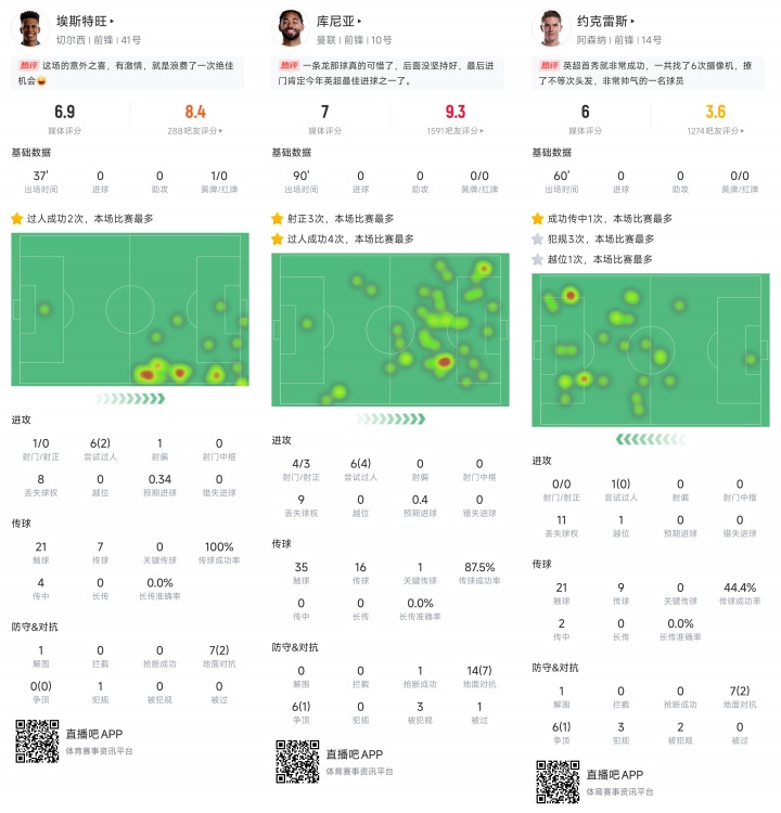 曼城:赖因德斯(1球1助)、谢尔基(1球)、努里、特拉福德(零封)